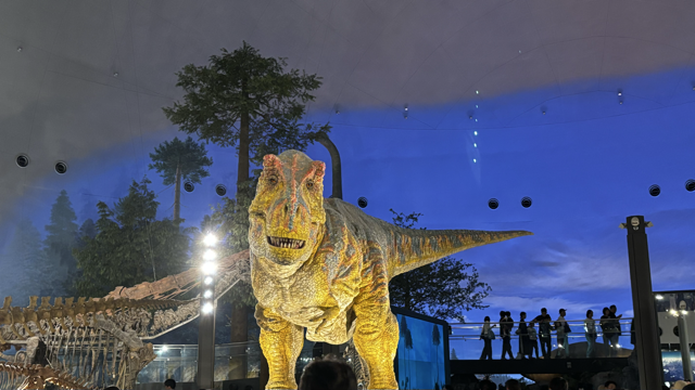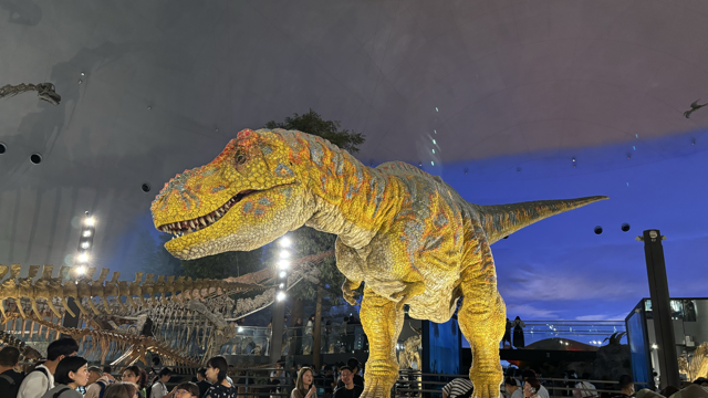 恐竜博物館の象徴、ウネウネ動くティラノサウルス。