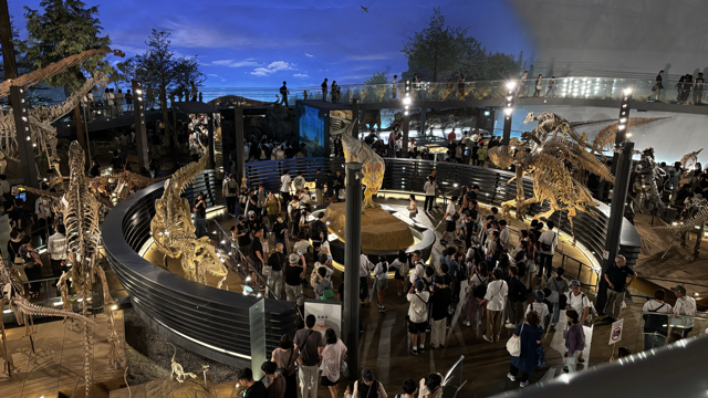 エスカレーターが背骨、各フロアの廊下が肋骨を模していて、館内はさながら恐竜の身体の中を探検するような構造である。