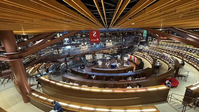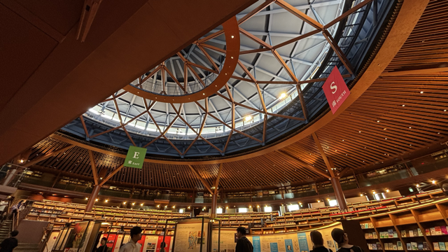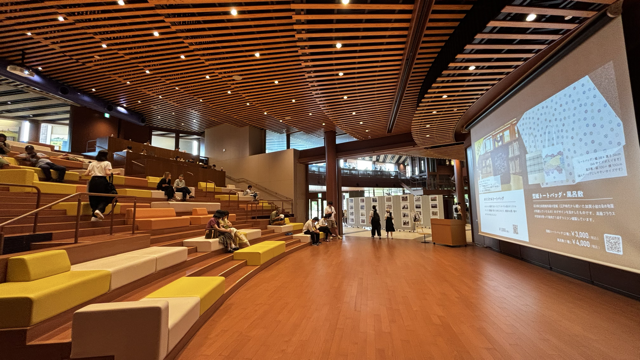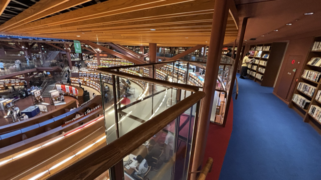 1日目に行った市立海みらい図書館のように、館内撮影を原則禁止としている図書館は多いが(図書館であることを考慮したらまあそれが普通なのだけど)、この県立図書館は「どうぞ撮ってください」と言わんばかりに廊下からせり出した空間が存在する。いいでしょここ、と言いたげな圧倒的な建物としての自信を感じさせてとても善い。