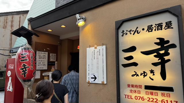 旅の締めくくりのメシは金沢おでん「三幸」へ。